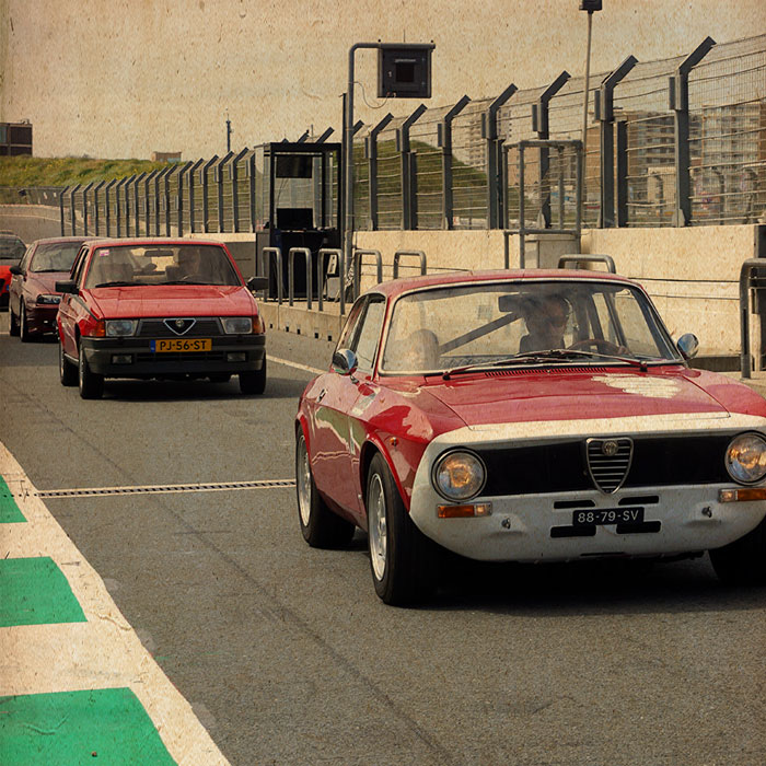 De snelheid staat hier centraal. Deze klasse staat open voor alle types Alfa’s, met of zonder kenteken, van klassieker tot en met net afgeleverd.