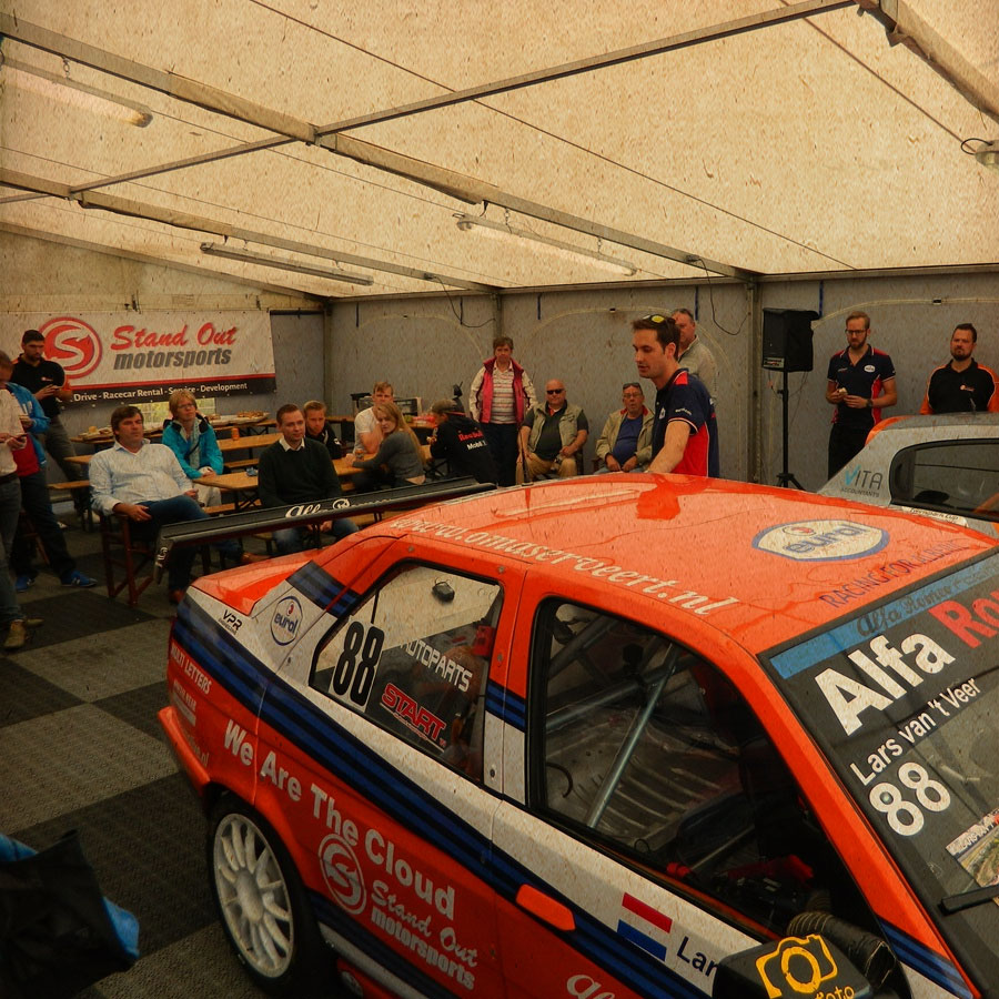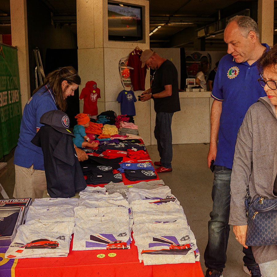 In the pit boxes you will find the SCARB club desk and club shop. The shop, opening at 10 a.m., offers a wide range of Alfa related clothing and collectibles such as T-shirts, sweaters, umbrellas, pens and some gadgets to give that special effect to your Alfa Romeo.